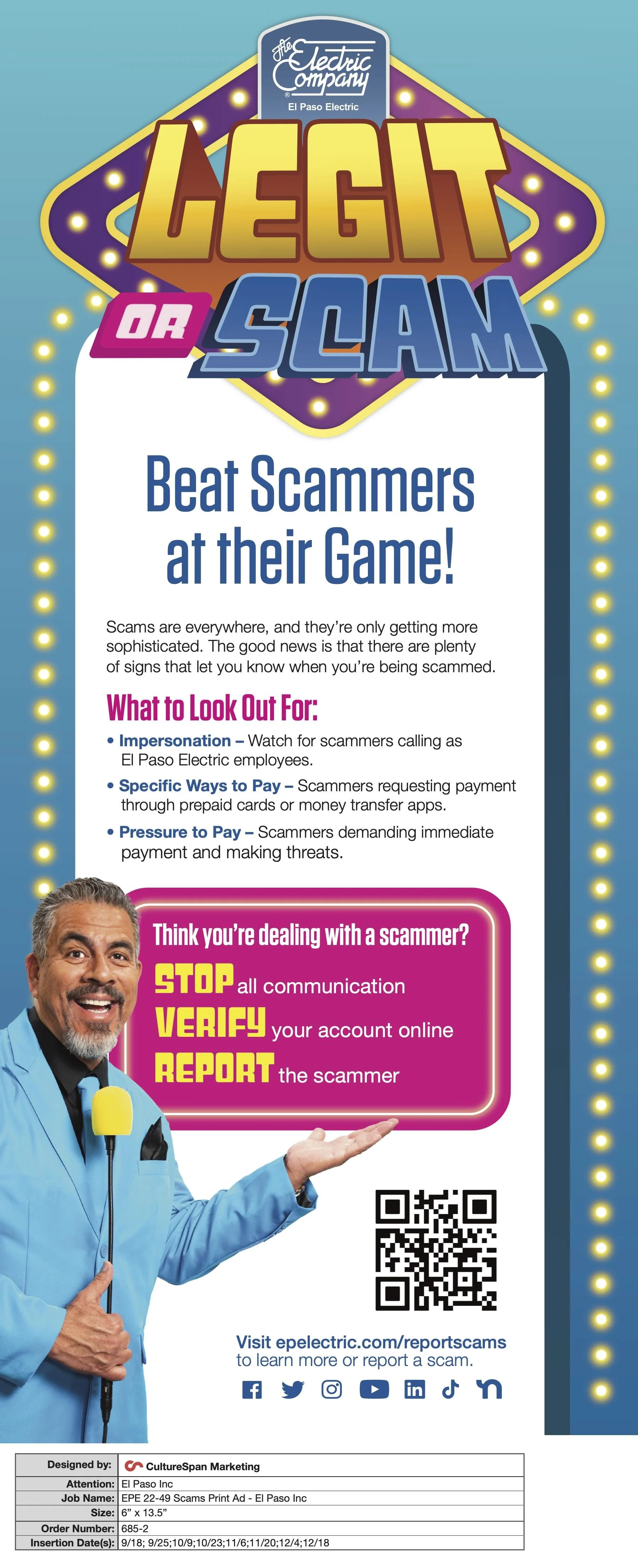 Warning about scams can sound like scolding, especially when it’s coming from a utility. And once it does, you risk having the audience tune out before the first sentence is over. At the same time, scam attempts were climbing, and El Paso Electric needed a way to make people actually pay attention.